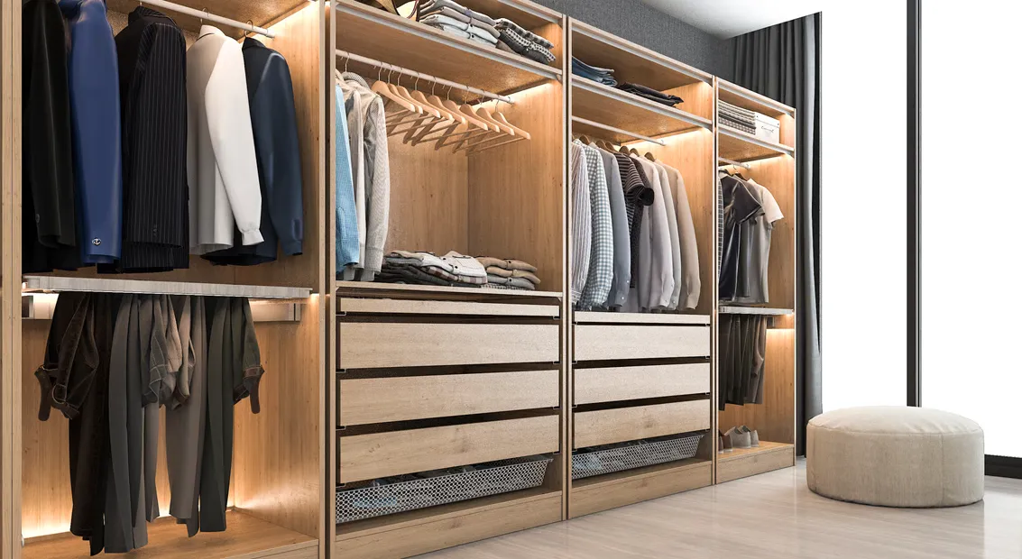 In questo modo, subito sotto il tuo guardaroba, potrai inserire altri mobili, come letti, divani, scrivanie e comò.